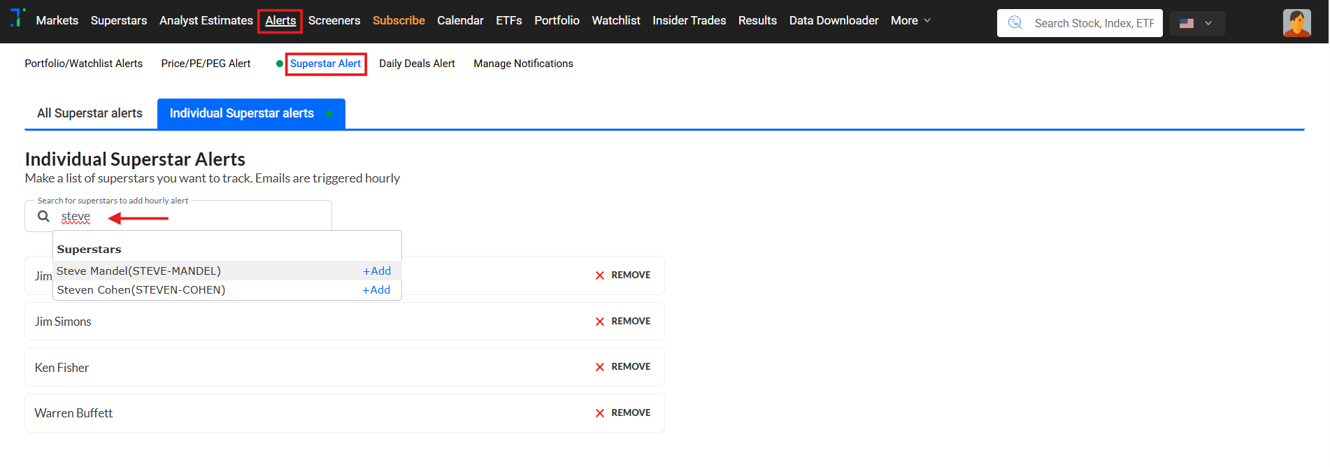 Individual Superstar Alerts: You pick the Superstars you want to follow and receive hourly updates only on their trades or disclosures.